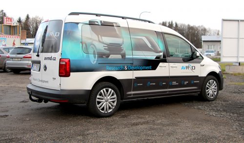 Částečný polep vozu Volkswagen Caddy. Na okna byl použit polep certifikovanou onevision folií. Grafika polepu byla dodána klientem.