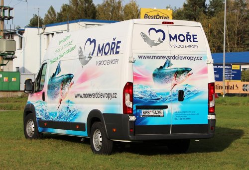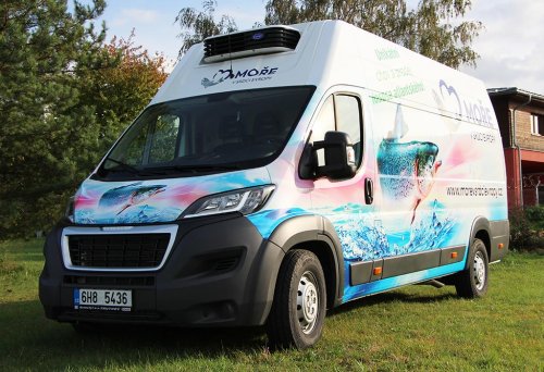 Celopolep dodávky Peugeot Boxer s chladírenskou úpravou. Polep nejkvalitnější polymerní folií renomovaného amerického výrobce Arlon doplněný o loga a texty z potisknuté a do tvaru vyřezané reflexní folie. Grafický návrh a realizaci zajistilo naše studio Jirout reklamní agentura.