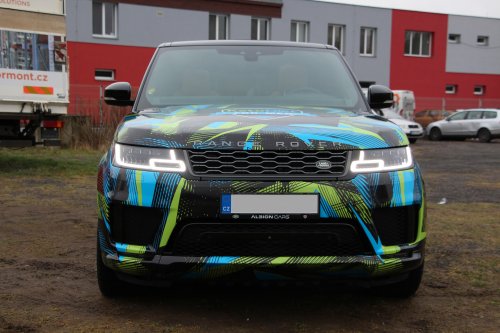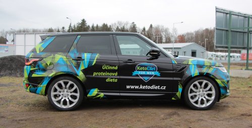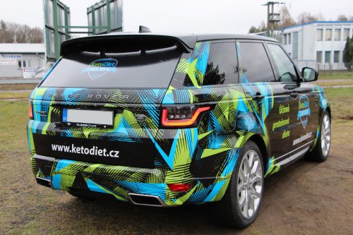 Celopolep vozu Range Rover. Polep nejkvalitnější polymerní folií s potiskem. Kreativní grafický návrh a realizace Jirout reklamní agentura.