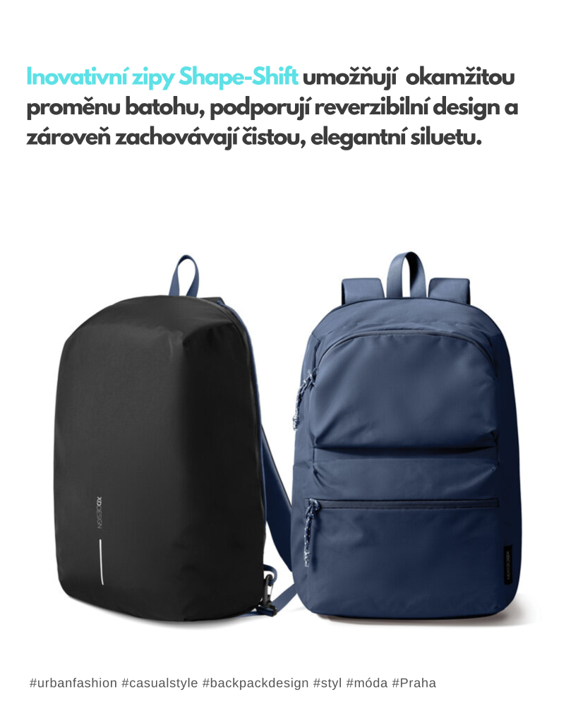 SWITCH má fígl, který ostatní batohy nemají. Stačí přehodit vrchní vrstvu přes spodní a máte úplně nový batoh. Žádná magie, jen chytrý design a dvojnásobná šance, že někdo uvidí vaše logo. A upřímně, kdo by nechtěl batoh, který se umí přizpůsobit náladě?