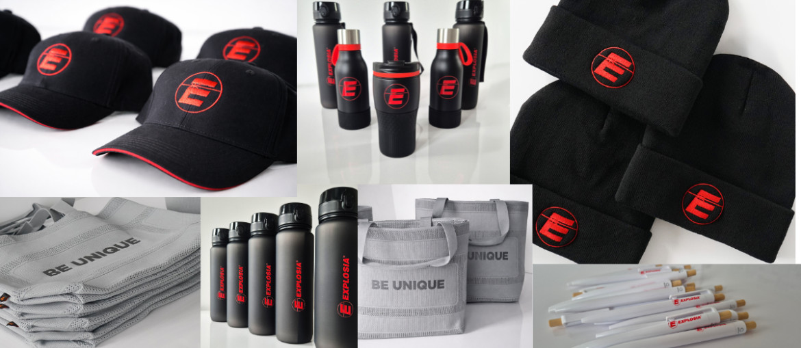 Celkově jsme pro Explosia připravili 14 reklamních předmětů. Pár z nich můžete vidět přímo nahoře nad tímto odstavcem. A právě tahle kolekce je skvělou inspirací pro každou firmu, která přemýšlí, co vlastně svým lidem a partnerům dát.
